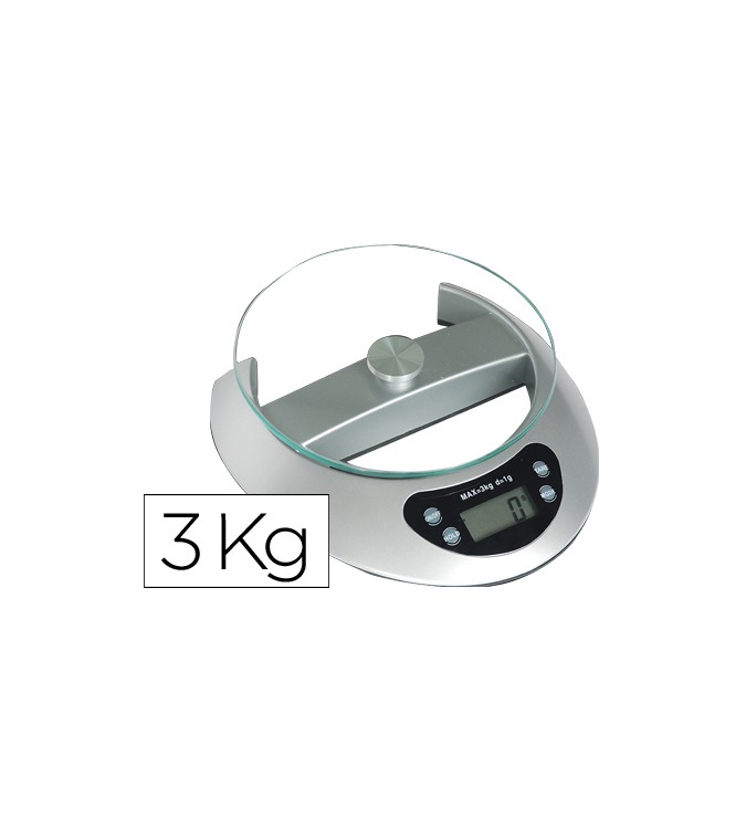 PLATAFORMA DE CRISTAL TEMPLADO DE 4 MM. CON CAPACIDAD HASTA 3 KG. GRADUACION CADA 1 G. PANTALLA LCD 3.9X1.7. TRABAJA CON 2 PILAS CR2025 (INCLUIDAS).MEDIDA DE LA BASE: 19X21 CM. DIAMETRO: 17 CM.
