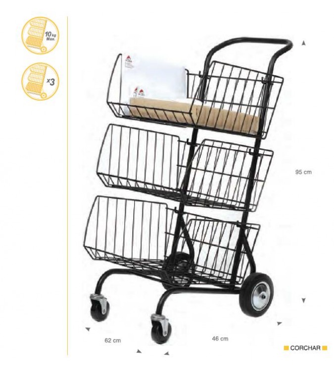 El carro se compone de 3 cestas de gran capacidad extraibles,