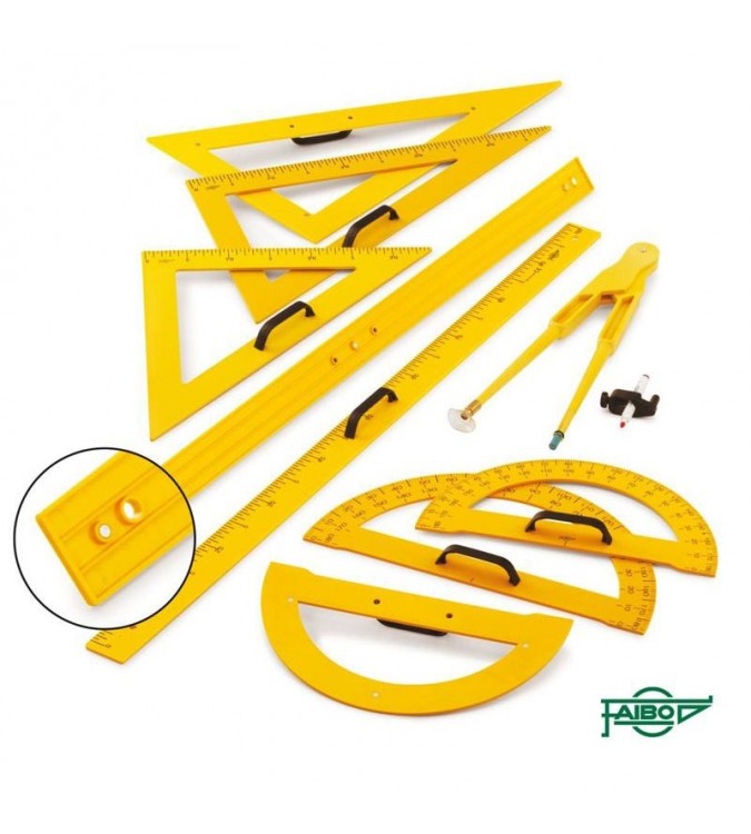 JUEGO ENCERADO MAGNETICO - REGLA 100CM, SEMICIRCULO 34CM, ESCUADRA 50CM, CARTABON 50CM Y COMPAS 42CM - AMARILLO