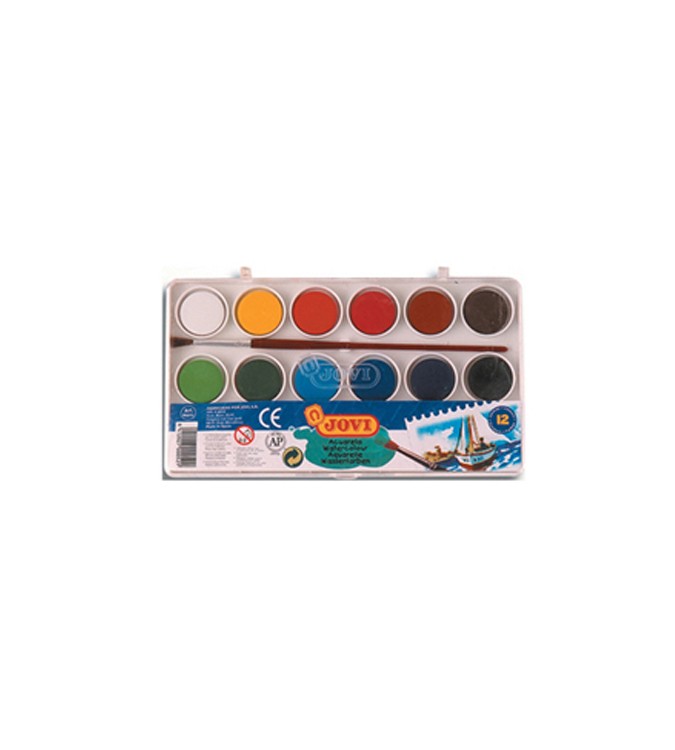 Acuarelas en pastillas diluibles al agua. Secan rápido, proporcionan un buen rendimiento y no hacen burbujas sobre el papel. Incluye pincel. No indicada para menores de 3 años. En estuche de plástico.