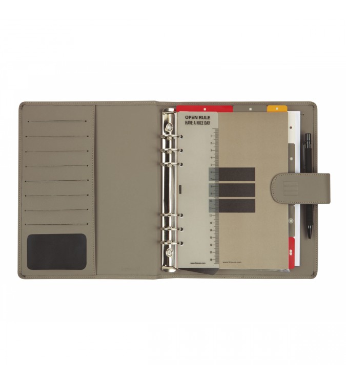 Agenda profesional de anillas con mecanismo niquelado y sistema de organización. Diseño elegante y moderno. Con departamentos para tarjetas, carnés, etc. Incluye portaminas. Cierre con broche. La anualidad contiene la información útil relativa a: onomástica (excepto ed. portuguesa), festivos nacionales, cambios de estación y cambios de hora. Esta agenda permite cambiar anualmente el recambio. Consulta los recambios y accesorios disponibles para esta agenda y personalízatela a tu gusto y necesidades.