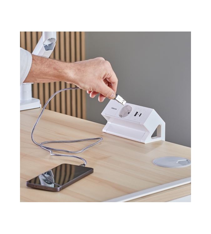 TOMA DE CORRIENTE (230 V), 1 PUERTO USB-A Y 1 PUERTO USB-C . CABLE DE ALIMENTACIÓN DE 2 MT BLANCO - FELLOWES