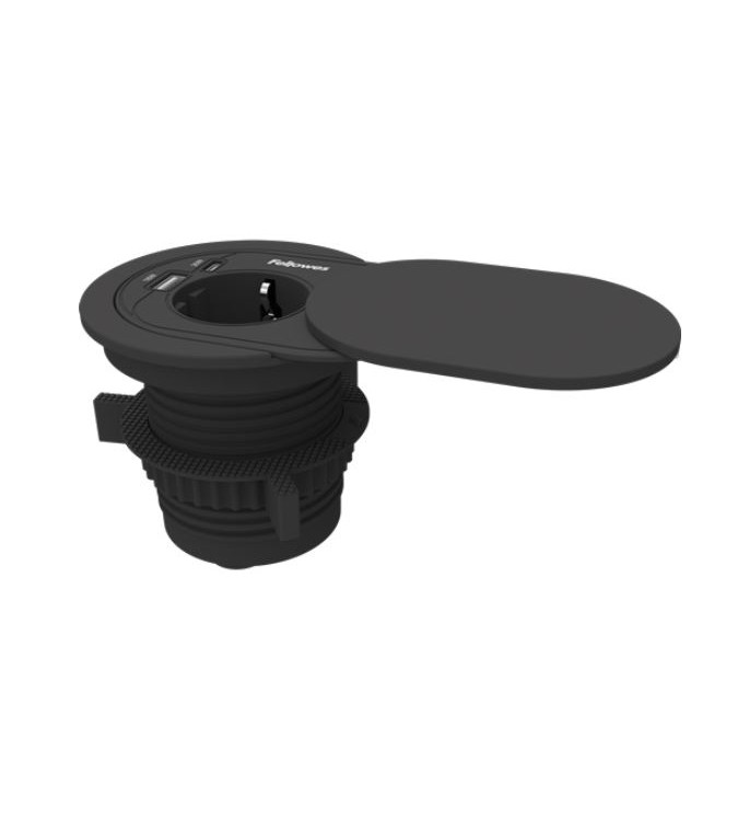 TOMA DE CORRIENTE EMPOTRABLE 1 PUERTO (230 V), 1 PUERTO USB-A Y 1 PUERTO USB-C . CABLE DE ALIMENTACIÓN DE 2 MT NEGRO - FELLOWES