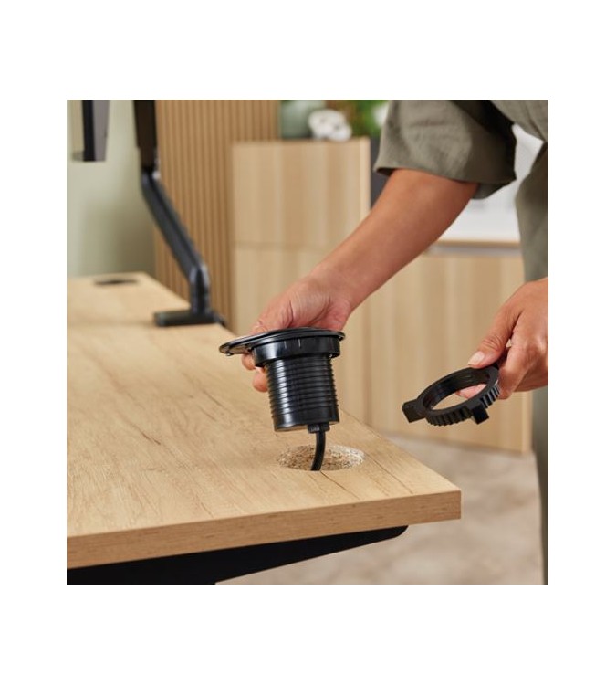 • Integra sin esfuerzo la alimentación en cualquier espacio de trabajo con esta toma de corriente empotrada en escritorio, discreta y de fácil acceso.