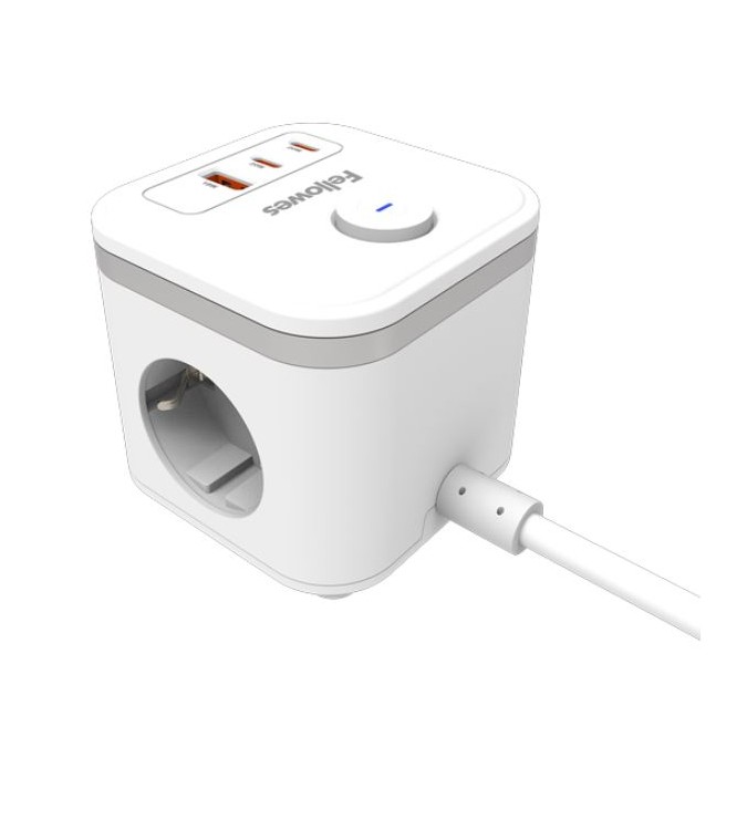 TOMA DE CORRIENTE CUBICO MULTIENCHUFE 3 PUERTOS (230 V), 1 PUERTO USB-A Y 2 PUERTO USB-C CABLE DE 2 MT BLANCO - FELLOWES