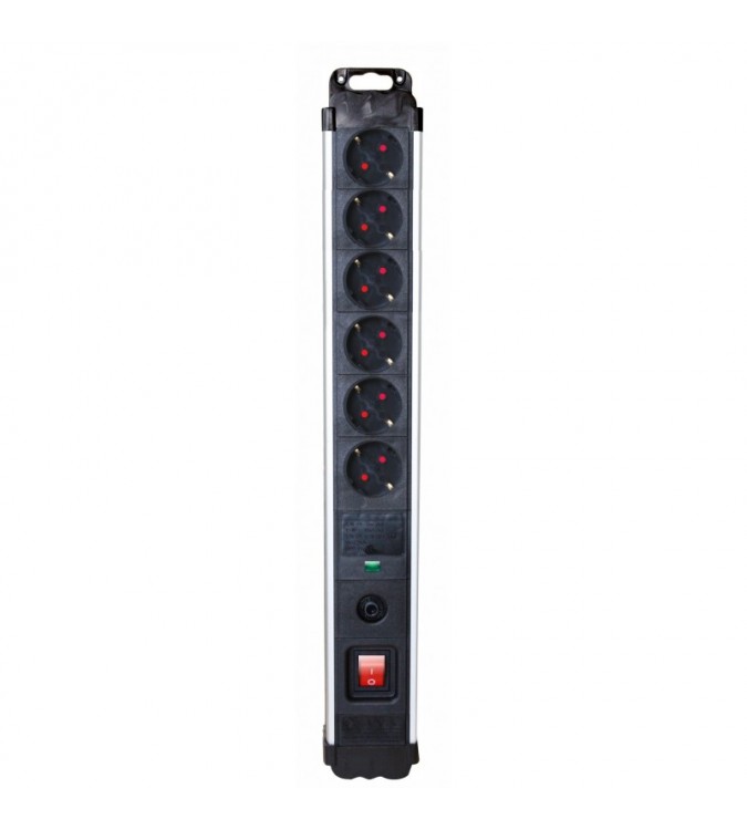 REGLETA 6 TOMAS PROFESIONAL ALUMINIO - PROTECCION SOBRETENSIONES Y SOBRECALENTAMIENTOS SILVER