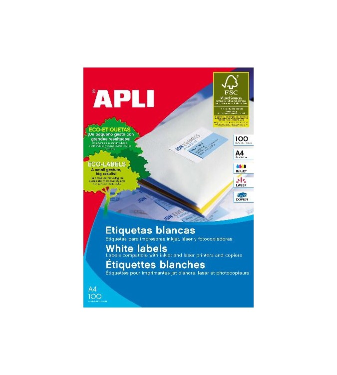 Etiquetas blancas para impresora inkjet, láser y fotocopiadoras a4 adhesivo permanente, cantos ramos caja de 100 hojas