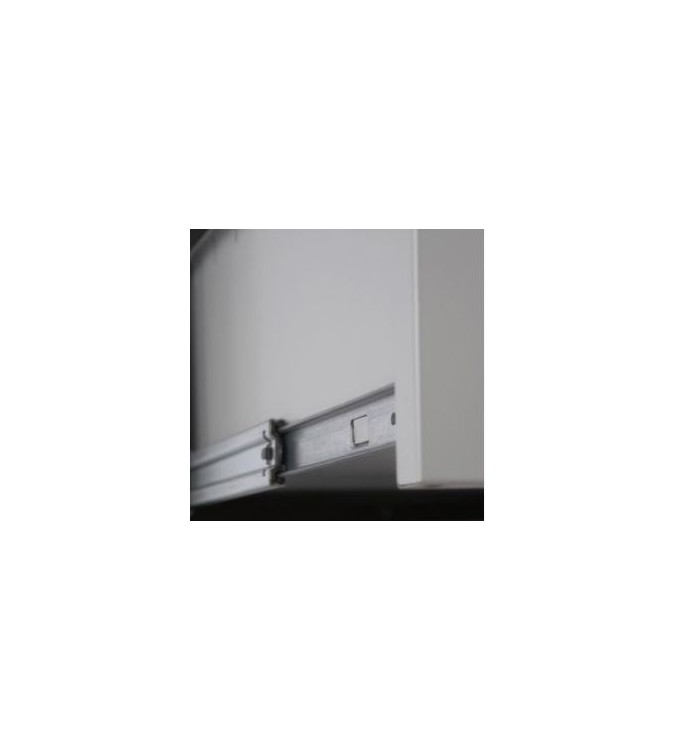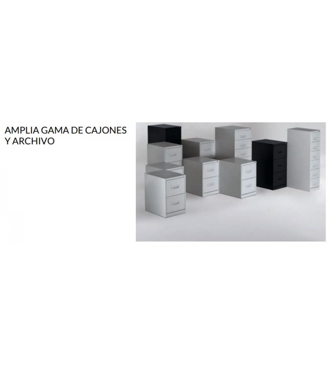 Los laterales del cajón van ranurados para carpetas colgante o compresores. Los frentes de los cajones incluyen de serie tiradores de ABS con