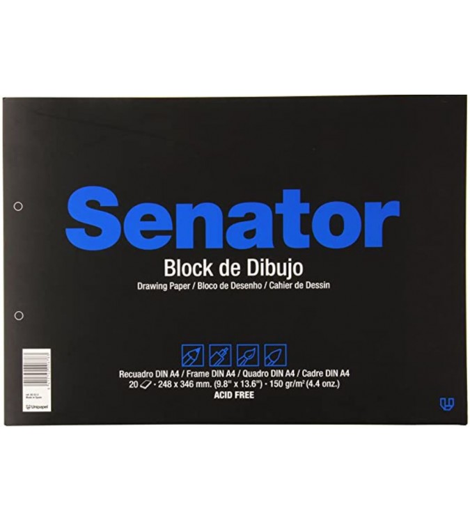 BLOC DIBUJO ENCOLADO CON 2 TALADROS SENATOR 20 HOJAS 150GR 248x346CM