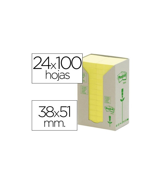 Bloc de notas adhesivas quita y pon recicladas en torre post-it 38 x 51 mm 24 blocs 653 reciclado. |