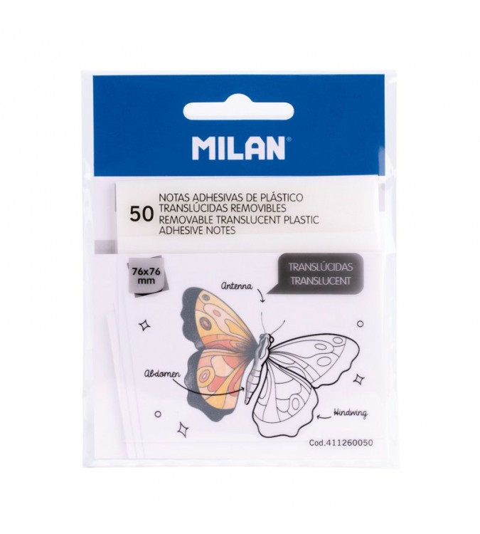 NOTAS ADHESIVAS DE PLASTICO MILAN 76X76 TRANSLUCIDO 50 HOJAS