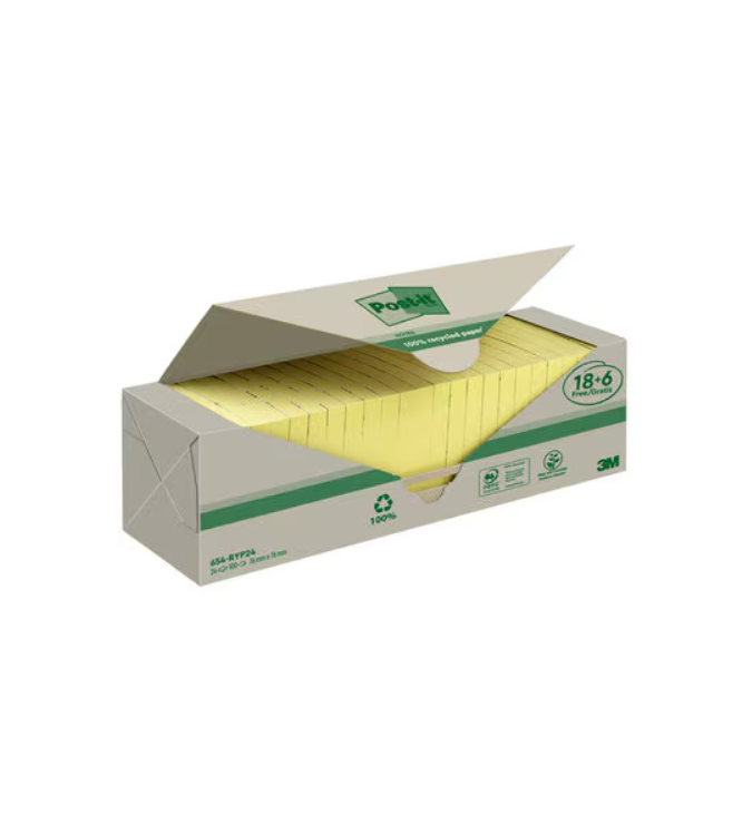 NOTAS ADHESIVAS POST-IT 654-1B 100 H. RECICLADO 76X76 MM 18 + 6 REGALO