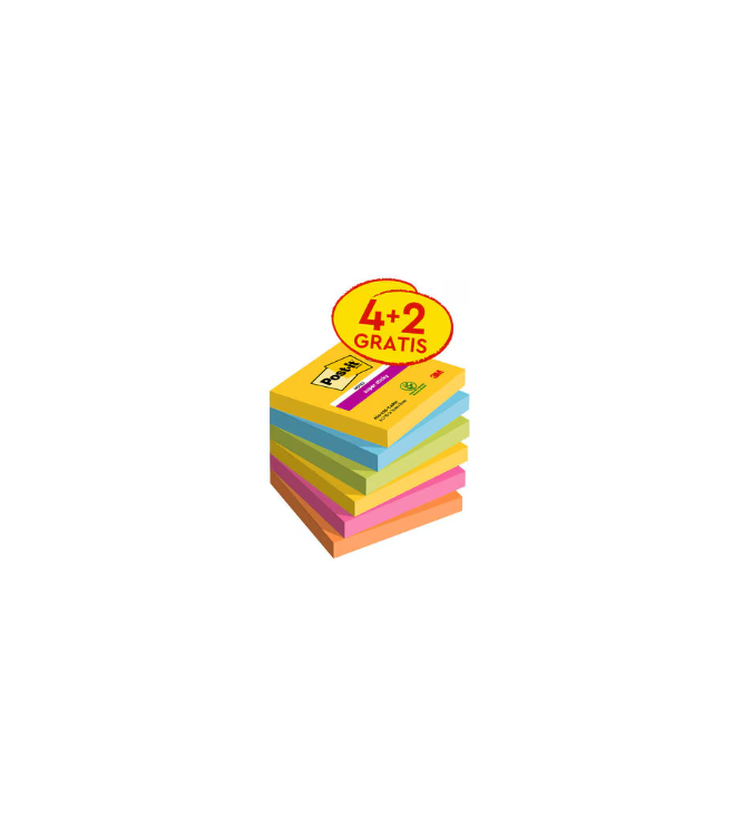 Las notas Post-it® Super Sticky aguantan y duran más. Tienen el doble de poder de adherencia que las notas Post-it® originales para asegurarse de que el mensaje llegue. Estas notas autoadhesivas son perfectas para superficies verticales y difíciles e ideales para tomar notas o dejar mensajes y recordatorios. Disponibles en colores vibrantes y enérgicos, son superfuertes, superversátiles y están diseñadas para que tus mensajes destaquen. Están fabricadas con papel con certificación PEFC, obtenido de bosques certificados, renovables y de gestión responsable, con un 60 % de adhesivo de fuentes renovables que proviene de una planta que vuelve a crecer cada año.