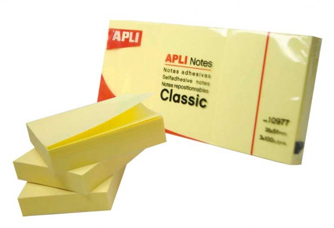 Notas adhesivas apli 38x50 amarillo 3 blocs de 100h.
