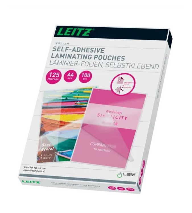 BOLSA PLASTIFICAR A4 216 X 303 MM 125 MC ADESIVA CAJA DE 100 UNIDADES LEITZ