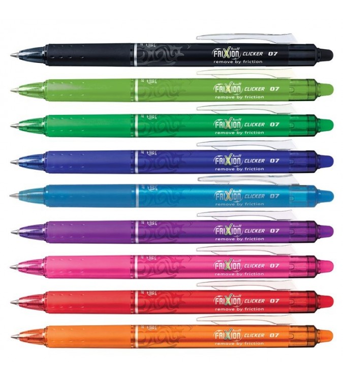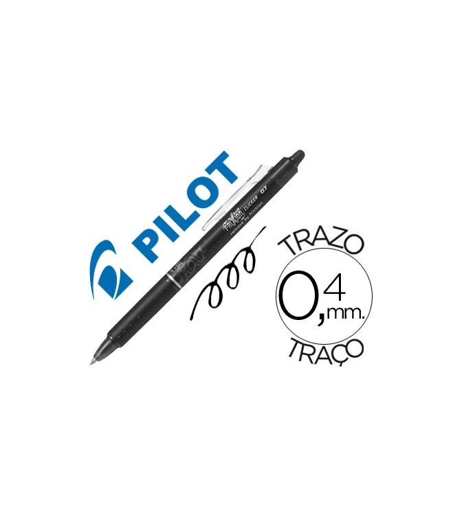 Bolígrafo la tinta desaparece con un único y novedoso sistema de fricción. No mancha ni daña el papel, no deja restos.diametro de bola 0,7mm, ancho de trazo 0,4mm punta de bola y grip de caucho. Cuerpo con moderno diseño. Mecanismo retractil.