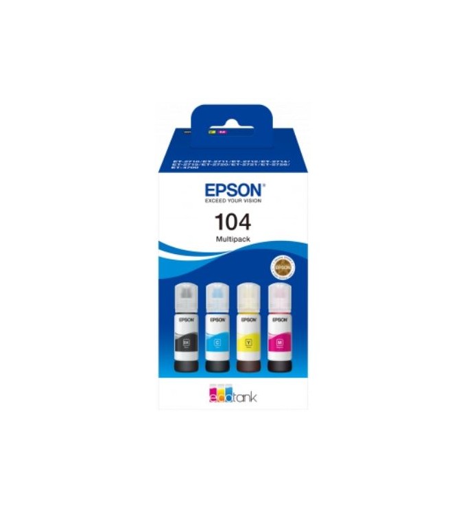 BOTELLA TINTA EPSON ECOTANK 104 PACK 4 BOTELLAS (BCMY) PARA ET2710 ET2810 Y ET2820 SERIES