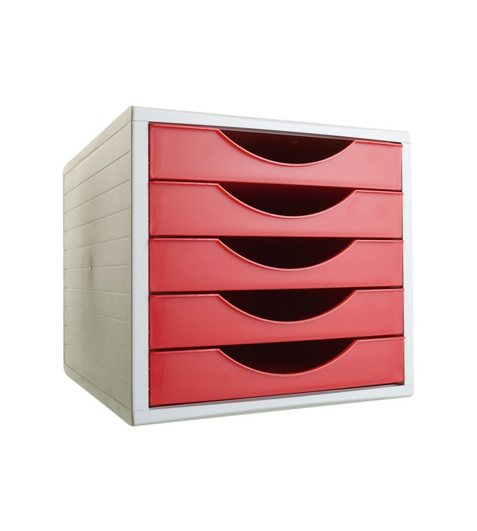 MODULO 5 CAJONES ARCHIVOTEC CARCASA GRIS CAJONES ROJOS