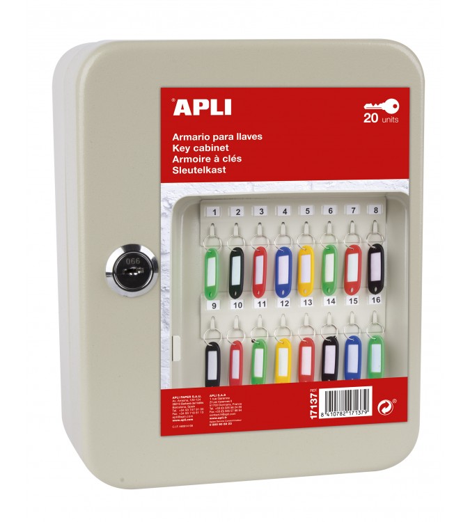 Armario porta llaves en color blanco con cierre. Cada armario dispone de 20 posiciones para colgar llaves. Ideal para oficinas y almacenes, para mantener todas las llaves organizadas y fáciles de acceder. *No incluye los llaveros.