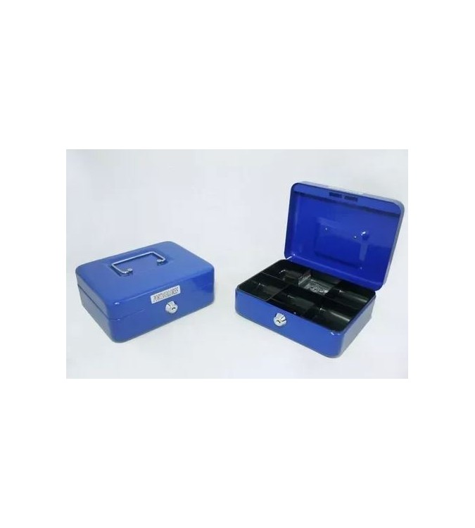 CAJA CAUDALES METALICA 250 X 170 X 90 MM. ARTES COLOR AZUL CON BANDEJA Y CIERRE