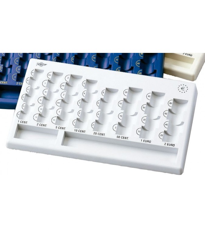 Bandeja para clasificar monedas, con ocho departamentos, uno por cada valor de moneda. 100% reciclable. Dimensiones: 31 x 18,5 x 3 cm*