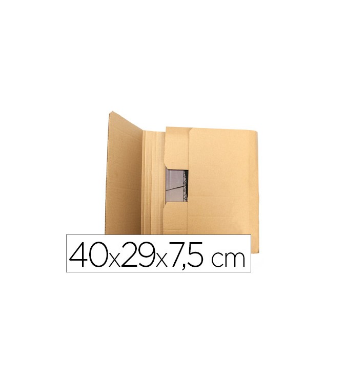 Caja para embalar libros. Ideal para protección en el envío de libros, catálogos, revistas, dosieres gran resistencia. Fácil montaje: girando hacia la derecha la solapa con trepado en vértice, se formarán la base y las 4 solapas de cierre. Fabricada en cartón de canal simple de 3 mm de espesor. |