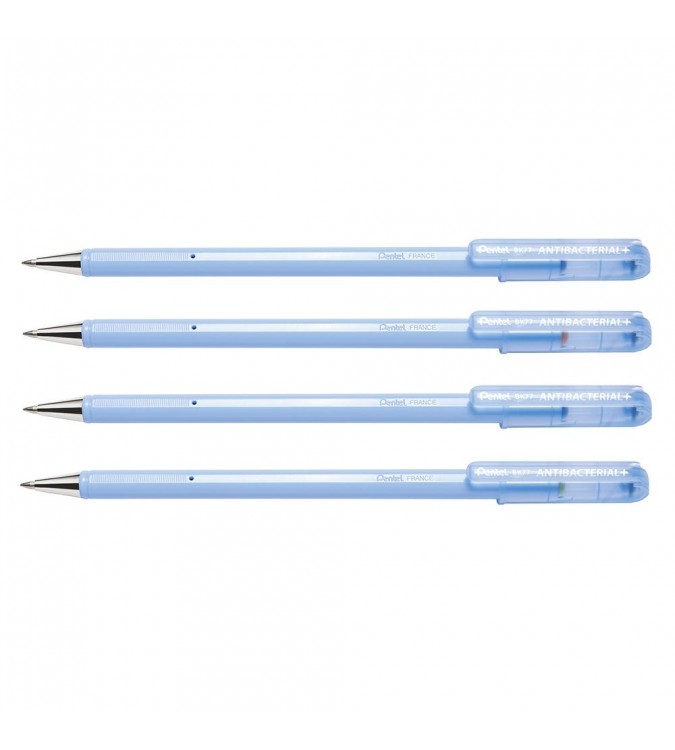 El bolígrafo Antibacterial+ de Pentel está fabricado con un plástico especial que contienen iones de plata con propiedades antibacterianas y biocidas. Perfecto para determinados trabajos de cara al publico, como en los centros de la salud y hospitales, en la restauración, en la educación, en la administración... Cuerpo delgado de color azul claro.