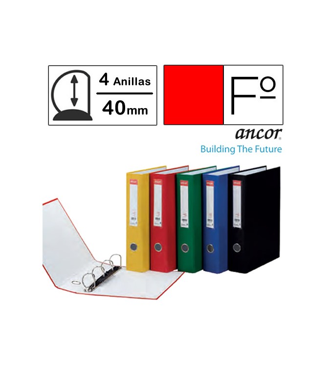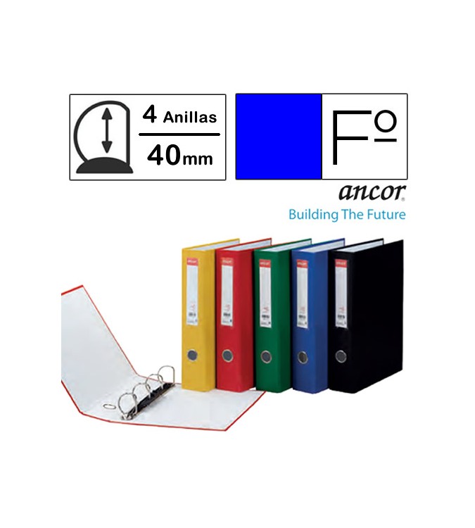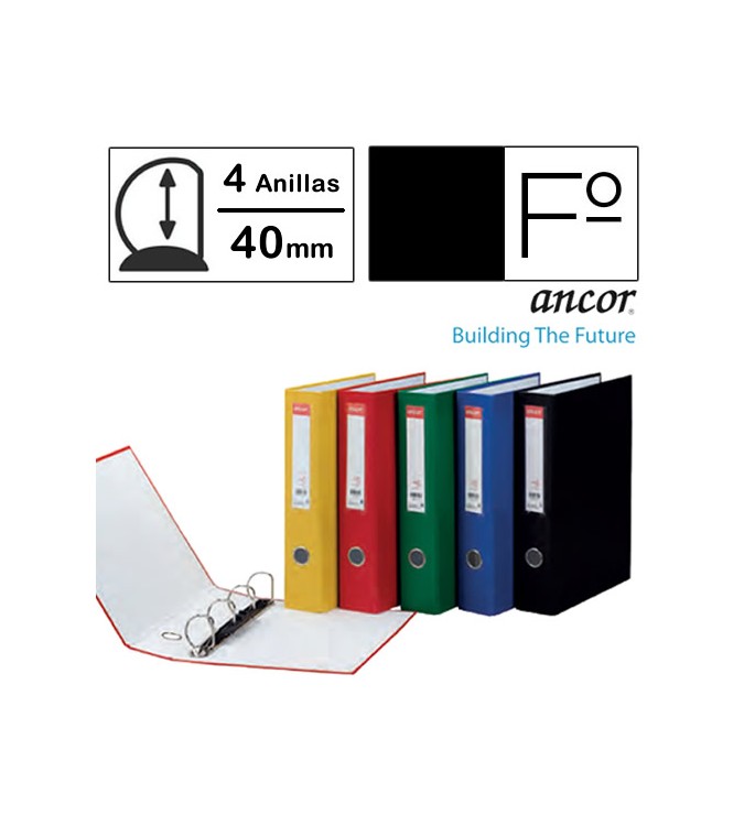 Carpetas con 4 anillas de 40mm tamaño folio 330 X 260 X 60mm forradas en polipropileno con tarjetero en el lomo y compresor de plastico