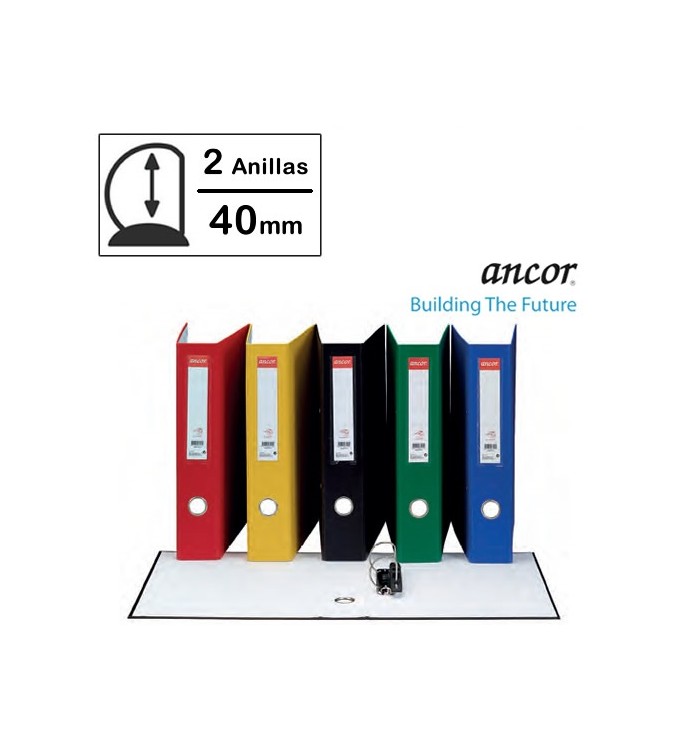 Carpetas con 2 anillas de 40mm tamaño folio 330 X 260 X 60mm forradas en polipropileno con tarjetero en el lomo y compresor de plastico