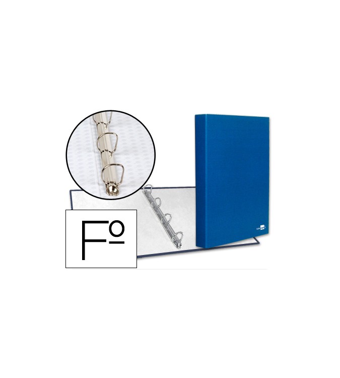 Carpeta de 4 anillas 25mm mixtas liderpapel folio carton forrado paper coat azul. Carpeta cartón entrecolado de 1,75 mm de espesor, forrado con papel de encuadernación plastificado, gofrado tela en pvc. Con anillas mixtas.