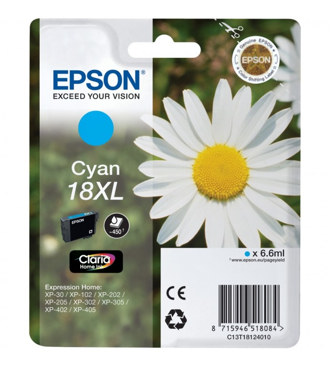 Cartucho de tinta Cian C13T18124010 para Epson XP 30/412 - 450 Pag / 6,6 ml