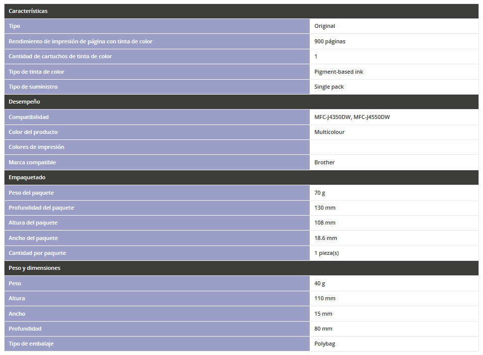 Impresoras relacionadas: MFCJ4350DW, MFCJ4550DW