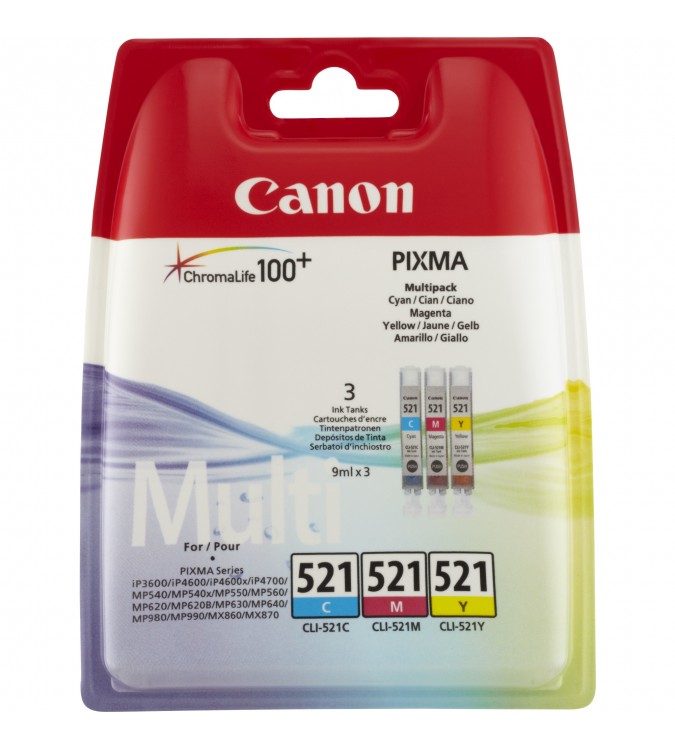 Cartucho de tinta Pack 3 Colores (CMY) 2934B010 para Canon Pixma IP 3600/MP 980 Pack de 3 - 446 Pag / 9 ml CLI521- Pack C/M/Y