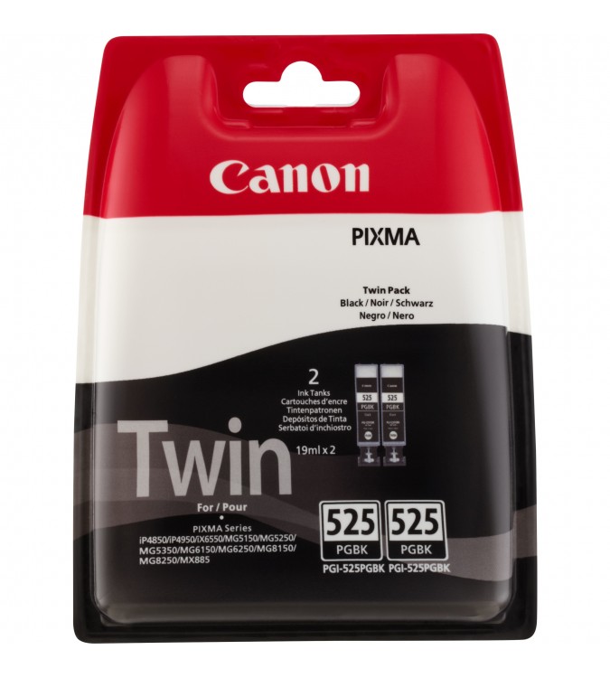 Cartucho de tinta Negro 4529B010 para Canon Pixma IP 4850/4950/IX 6550/MG 5350/6150/6250/MX 885 Pack de 2 - 323 Pag / 19 ml PGI525