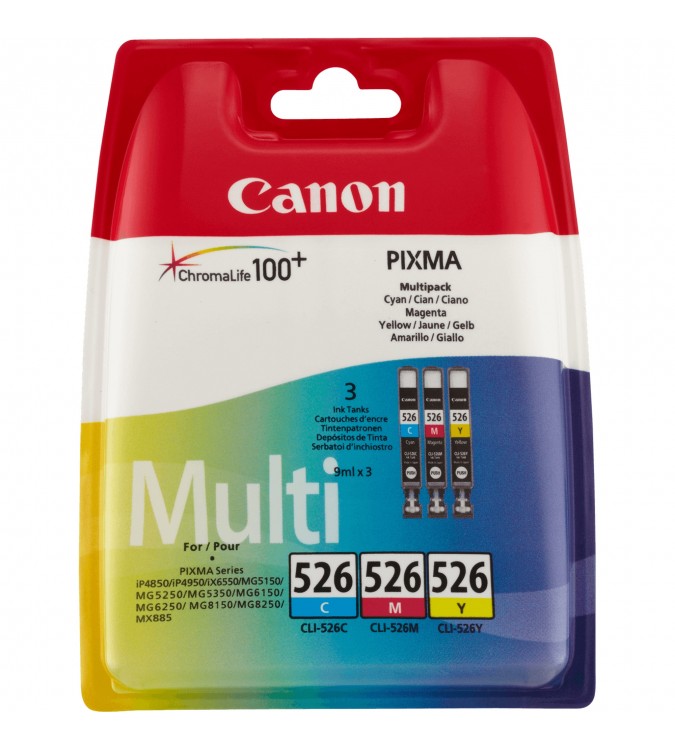 Cartucho de tinta Pack 3 Colores (CMY) 4541B009 para Canon Pixma IP 4850/4950/IX 6550/MG 5350/6150/6250/MX 885 Pack de 3 - 9 ml CLI526