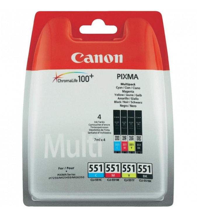Cartucho de tinta Pack 4 Colores (CMYK) 6509B008 para Canon Pixma IX 6850/MG 5450/6350/MX 725 Pack de 4 CLI-551