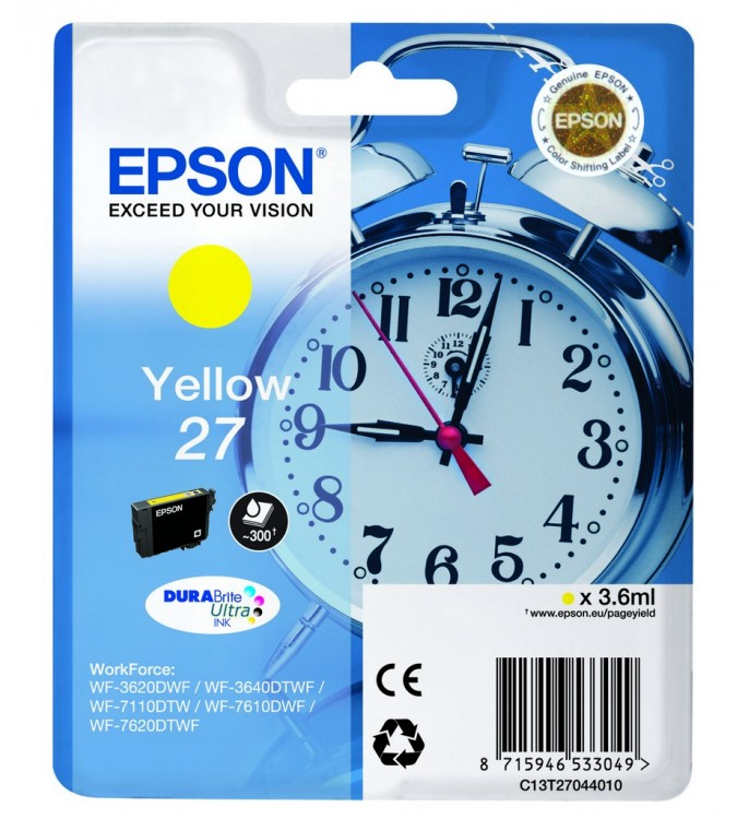 Cartucho de tinta Amarillo C13T27044010 para WorkForce WF-3600 Series/3620 DWF/WF/7110 DTW/7600 Series/7610 DWF/7620 DTWF - 300 Pag / 3,6 ml