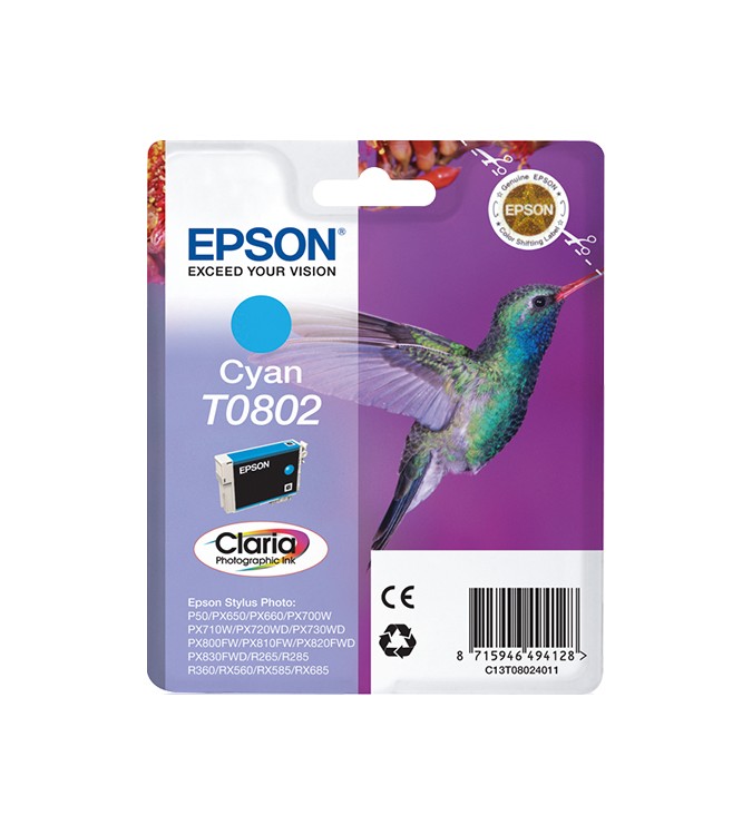 Cartucho de tinta Cian C13T08024011 para Epson Stylus Photo P 50/PX/PX 730/R 265 - 435 Pag / 7,4 ml