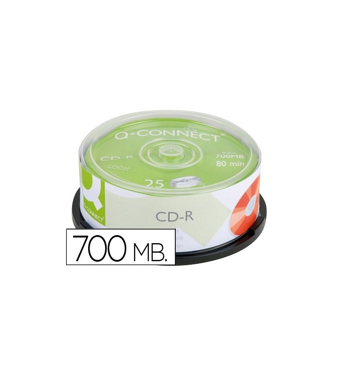 Cd-r q-connect capacidad 700mb duracion 80min velocidad 52x bote de 25 unidades.