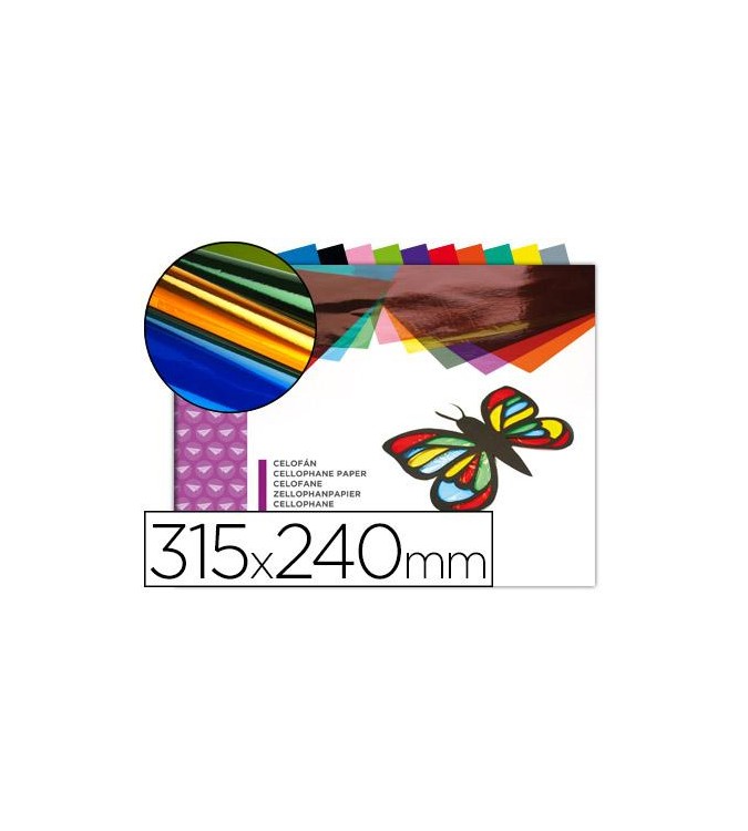 Bloc trabajos manuales liderpapel celofan 240x315mm 10 hojas colores surtidos. 10 hojas de papel celofán en colores surtidos. Medidas: 315 x 240 mm. Gramaje 30 g/m².