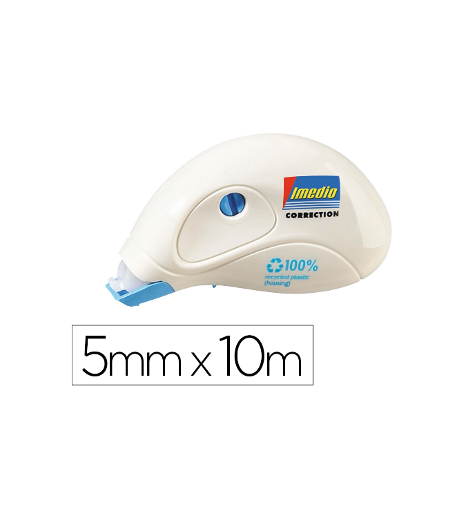 Para corregir de forma rápida, limpia y precisa textos impresos o escritos a mano. Adecuado para casi todo tipo de papel. Puede escribirse encima de forma inmediata, sin tiempo de secado y sin disolventes. Con tapón integrado para proteger la cinta, mecanismo de apoyo, control de nivel de cinta y tensor de cinta. La cinta tiene un largo de 10,0 m y un ancho de 5,0 mm. El rollo (carcasa) está compuesto por un 100 % de plástico reciclado y el envase está fabricado con más de un 85 % de cartón reciclado.