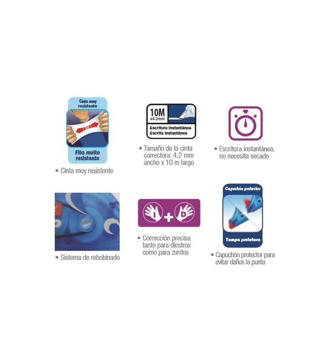 Cinta correctora 4,2mm y 10m de longitud. Capuchón protector. Divertido diseño con forma de ratón. Cuerpo trasparente.