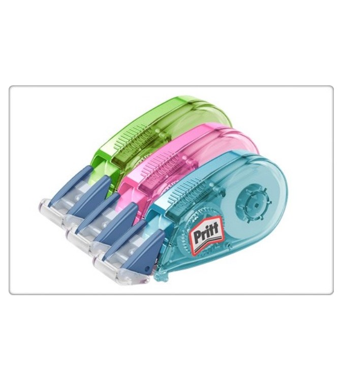El corrector mas pequeño del mercado. El más pequeño del mercado, con 6 m de cinta en 3 divertidos colores. Punta flexible: asegura una suave aplicación. Corrección pull& push: permite la aplicación en 2 direcciones, ideal para zurdos y diestros.