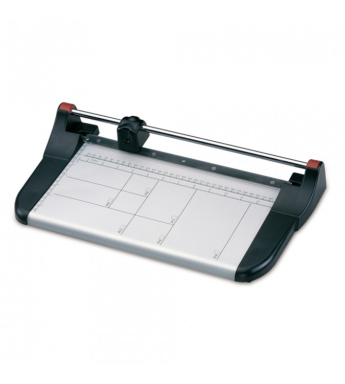 Las cortadoras de rodillo manuales de material de acero de alta calidad con ambos extremos en estilo y resistente ABS para los tamaños estándar están equipadas con una cuchilla giratoria de acero inoxidable. Cuchilla rotativa. Base de acero. Capacidad de corte: 10 hojas. Longitud de corte: 33 cm Peso 1,55 kg. Medidas 245 x 435 x 65 mm.