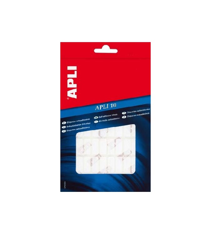 Etiquetas autoadhesivas blancas para escritura manual en bolsa de 10 hojas.cantos romos