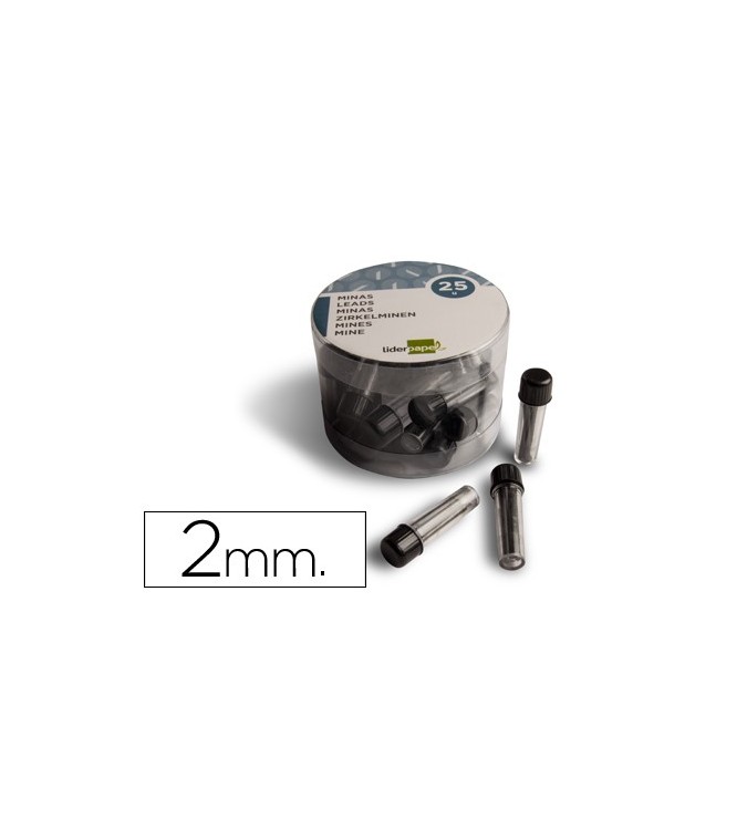 Minas de grafito para compás. Gran resistencia. 2 mm. Cada estuche contiene 3 minas.