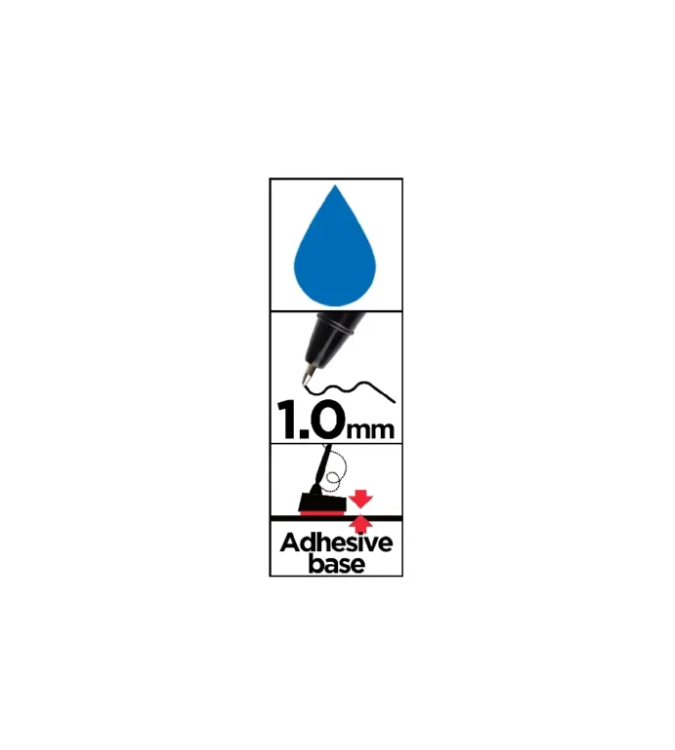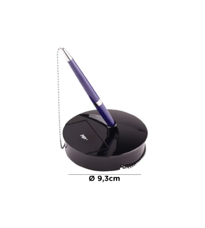 Con cadena que une el bolígrafo a la peana. Punta de 1,0 mm. Tinta azul.