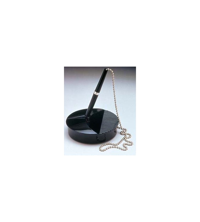 Bolígrafo ideal para mostradores y lugares públicos. Resistente cadenita contra robo. Pesada base antideslizante de gran solidez con lastre de 300gr.