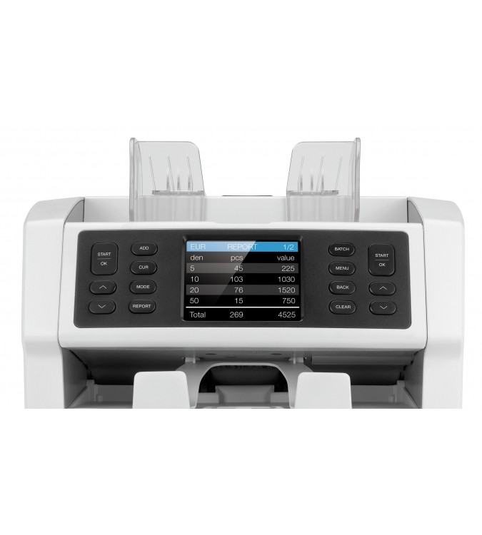El Safescan 2985-SX es la solución definitiva para contar, validar y clasificar billetes de forma sencilla y efectiva, ofreciendo un conteo de billetes mezclados y detector de billetes falsos de grado profesional. La gran pantalla táctil con menú rápido, teclado numérico y acciones prestablecidas individuales garantiza una operación rápida. Con un diseño de doble bandeja y la tecnología CIS (sensor de imagen por contacto, por sus siglas en inglés), contará el valor de los billetes más avanzados, tales como las impresos en polímero, los que tienen ventanas transparentes y aquellos cuyas denominaciones tienen dimensiones casi idénticas. Diseñada para un uso intensivo, el 2985-SX es ideal para empresas que necesitan un conteo rápido y sin errores para múltiples divisas y una precisión testada del 100 % en autenticación de billetes.