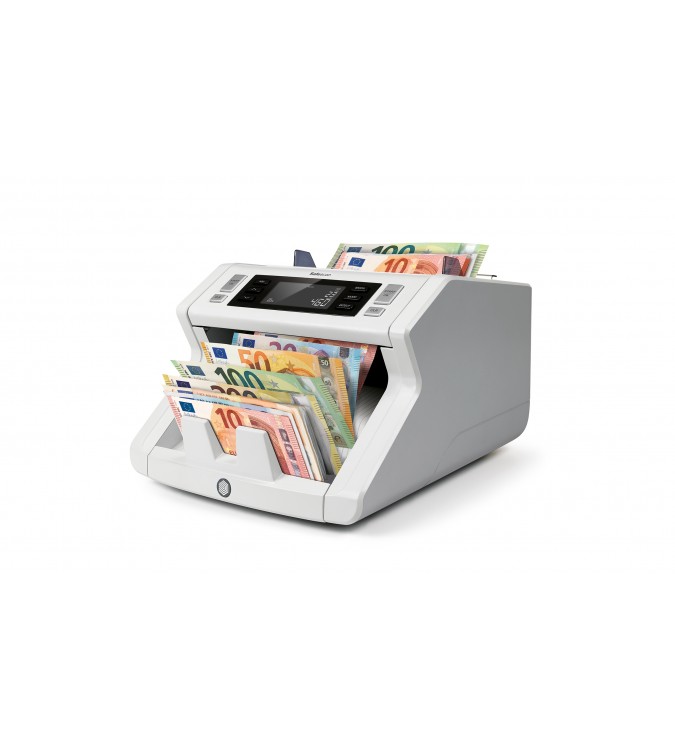 Cuenta y valora hasta 1.200 billetes por minuto. La contadora Safescan 2265 cuenta y valora billetes mezclados de euro y de libras esterlinas y cuenta billetes clasificados de cualquier otra divisa. Seleccione la divisa en el menú y comience el conteo. ¡Así de sencillo!